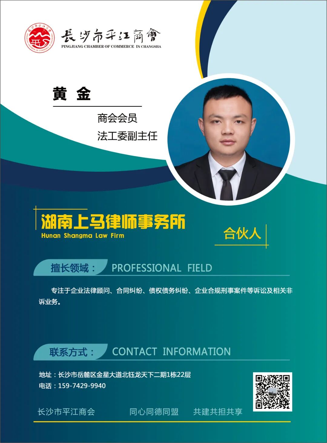 【会员风采】—湖南上马律师事务所合伙人黄金